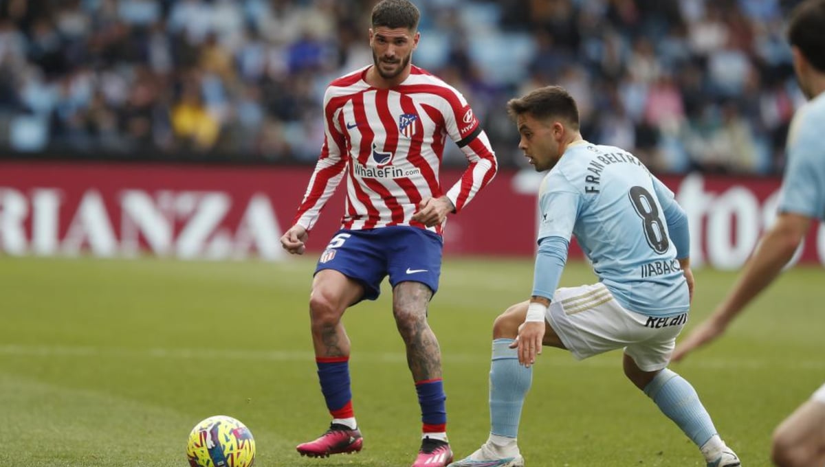 Rodrigo De Paul junto a Fran Beltrán en el partido entre Celta de Vigo y Atlético de Madrid la temporada pasadaUES