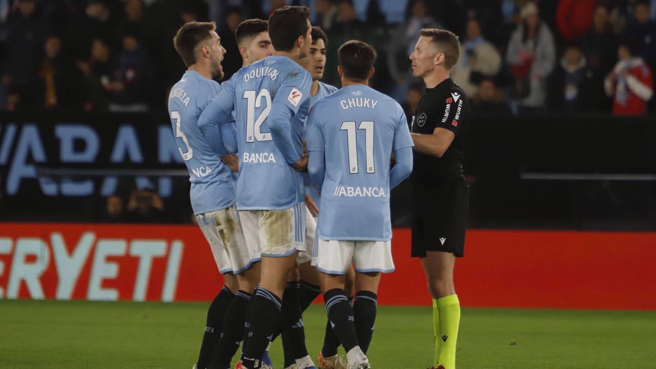 A la espera de posibles actuaciones en los despachos, con los analistas habituales divididos sobre si hubo o no penalti, pero coincidiendo en que el VAR no tuvo que entrar a revisar una acción en la prima la apreciación del colegiado, aparecieron por redes sociales muchas imágenes del citado momento cumbre del choque entre vigueses y nervionenses. Pero, especialmente, destaca una toma que todavía no se había visto, justo detrás del banquillo local. El usuario de TikTok @11rva muestra cómo presionan los jugadores y técnicos de ambos conjuntos a Hernández Hernández, explicándole lo que está viendo en el monitor. En un momento, el propio Navas le cuenta que no hay nada punible, mientras ciertos protagonistas, como Unai Núñez, tratan de separar los suyos y alguno ajeno como Ocampos del canario, mientras que el meta Nyland, por ejemplo, exhibe con expresividad su desacuerdo con la decisión inicial.