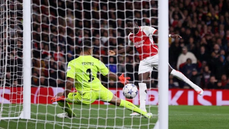 Los visitantes no tardaron ni ocho minutos en salir del partido, cuando Saka aprovechó un mal despeje de Benítez en un remate de Odegaard para, casi sin ángulo, hacer el 1-0. El primer gol y seguro que no el último de la perla inglesa, que también se encargó en el minuto 20 de encargar el 2-0.