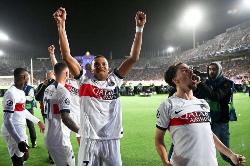 Goles: 1-0 (12') Raphinha; 1-1 (39') Dembélé; 1-2 (55') Vitinha; 1-3 (61') Mbappé, de penalti; 1-4 (89') Mbappé.
