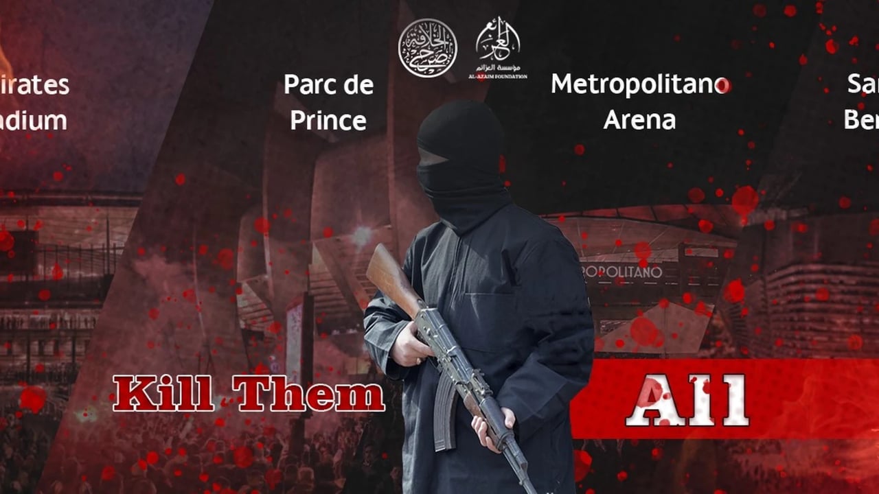 La fundación Al Azaim, medio que se encarga de difundir mensajes del Estado Islámico (Daesh, ISIS), ha hecho público la imagen de un cartel en el que se amenaza al Parque de los Príncipes, el Santiago Bernabéu, el Metropolitano y el Emirates Stadium, los cuatro estadios donde se disputan la ida de los cuartos de final de la Champions League. Bajo el lema "matarlos a todos", el Estado Islámico no cesa en su empeño por generar el terror.