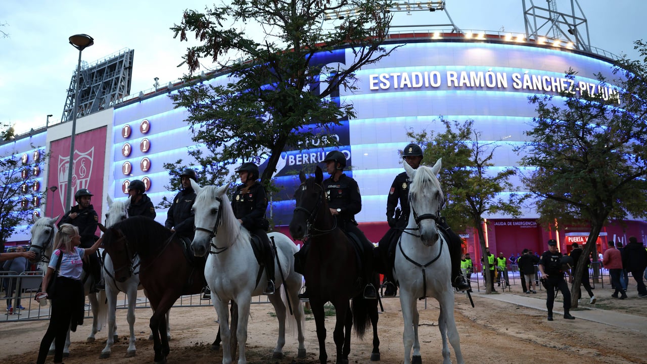 En este último punto, en el estadio Ramón Sánchez-Pizjuán trabajará un equipo de seguridad privada formado por 285 vigilantes, quince responsables de seguridad privada (jefes de equipo y coordinadores) y doce perros especializados en la detección de material pirotécnico con sus correspondientes guías, mientras que en labores de portería e información asistirán a los aficionados 71 auxiliares de servicio.