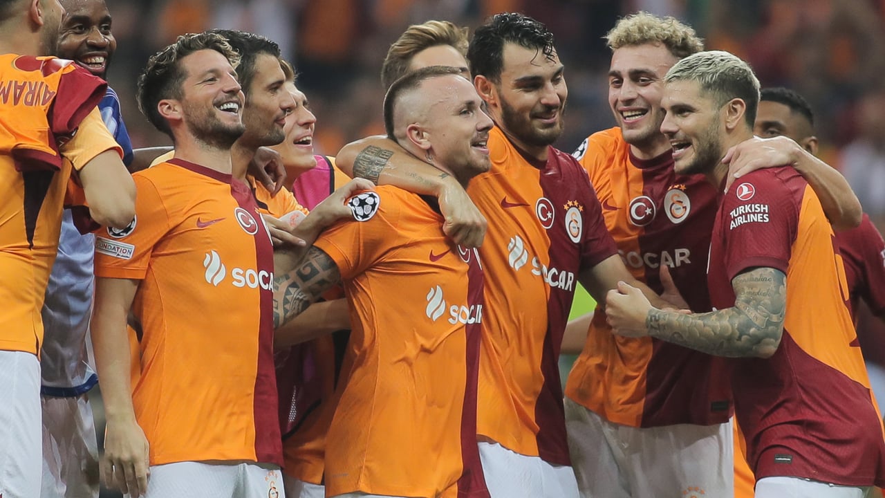 Los jugadores del Galatasaray celebrando su pase a la Fase de Grupos de la Champions LeagueUEFA Champions League