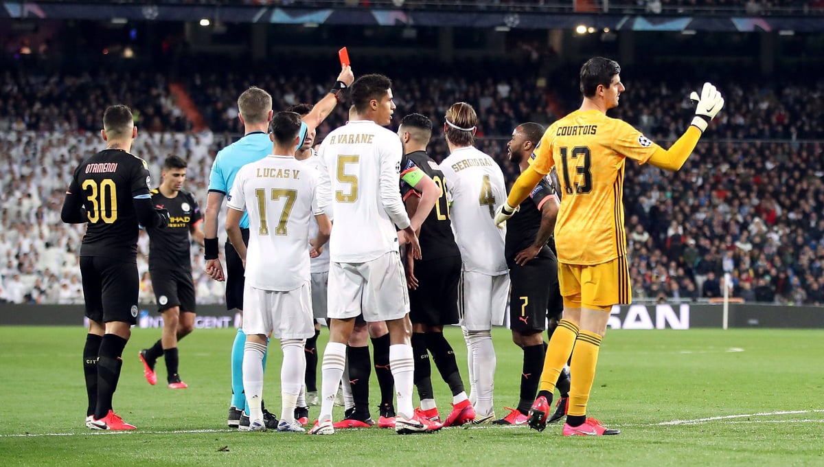 Orsato expulsa a Sergio Ramos en una de las eliminatorias de Champions que recientemente han librado Real Madrid y Manchester City. Cordon Press