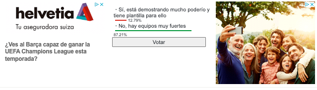 En la Encuesta Helvetia de hoy que hemos querido realizar en ESTADIO Deportivo hemos preguntado a la afición sobre si verdaderamente el FC Barcelona será capaz de ganar la UEFA Champions League esta temporada. Hay una opinión que pesa más que la otra, aunque la balanza parece decantarse claramente hacia un lado.