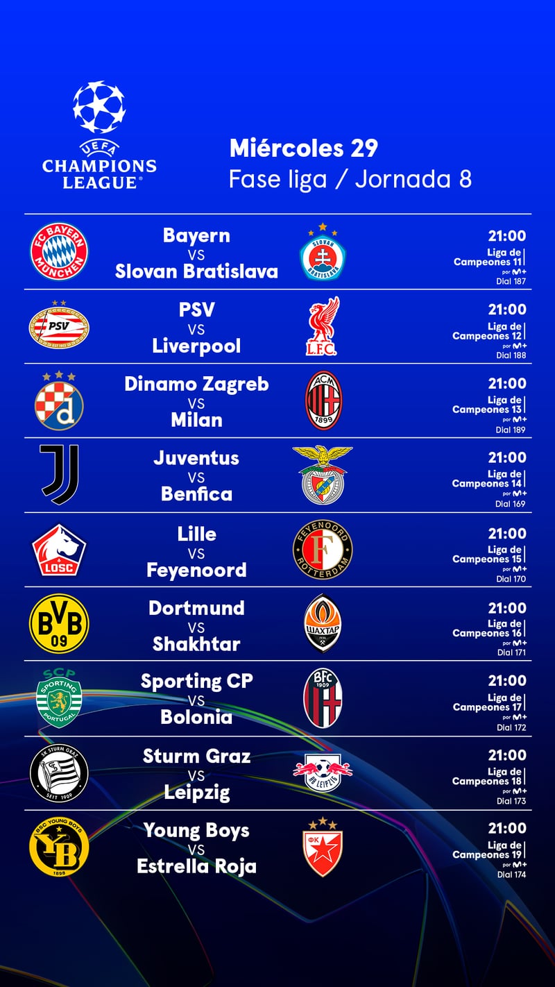 El PSV - Liverpool de la jornada 8 de la Champions League se podrá ver en directo en televisión a través de Movistar Liga de Campeones 12. Disponible en Movistar Plus (dial 188) y Orange (dial 284) y, en el multi, en Movistar Liga de Campeones 5 (dial 182 en M+ y 277 en Orange).