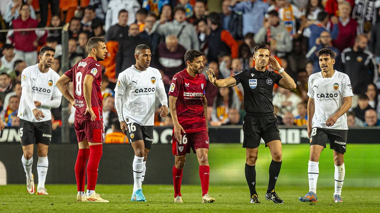 Fotografía con la que el Valencia CF ilustra las duras declaraciones de su director corporativo sobre el arbitraje de Del Cerro Grande ante el Sevilla FC.Valencia CF