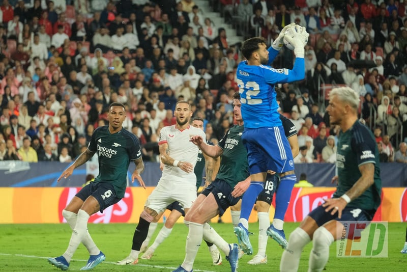 De hecho, emulando al 1-0 en la vuelta de cuartos de la pasada Europa League ante el Manchester United, Ocampos cazó un mal despeje con el pie de David Raya, aunque el ex del Brentford se rehízo para impedir que Lukébakio remachase desde cerca, en parte por el mal control del belga. Alcanzado el tercio inicial de encuentro, escaseaban las llegadas, con los de Diego Alonso empeñados en estrechar espacios entre líneas para anular a los londinenses. Las ayudas en defensa resultaban esenciales para que el aparente dominio de los pupilos de Mikel Arteta, que no se reflejaba en la posesión, quedara en el plano inmaterial. Se acercaba el intermedio con una evidencia: el Sevilla había conseguido equilibrar la diferencia inicial de ritmo e intensidad. Incluso, asustó con un zurdazo cruzado de En-Nesyri a pase de Ocampos, pero una contra en el último de alargue permitió a Gabriel Jesús asistir a Martinelli, que enmendó su error inicial regateando a un Nyland que se ahbia quedado a medias y marcar a puerta vacía.
