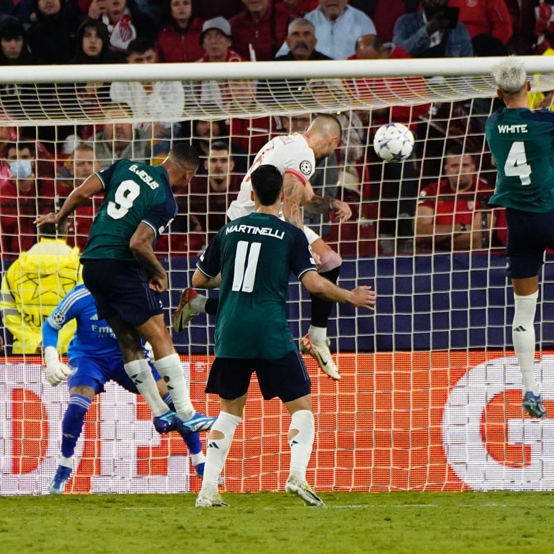 El Arsenal trató de aprovechar la inercia del gol psicológico para sentenciar por la vía rápida. Y lo acarició a los tres minutos, tras un despiste en un saque de banda que propició el error de Rakitic, pero el meta nórdico estorbó lo justo a Gabriel Jesús, mandándola luego a las nubes Odegaard sin portero. El brasileño se sacaría la espinita enseguida con un auténtico golazo, tras recibir casi en el córner, abrirse un poco y ponerla en la escuadra contraria, imposible para Nyland. Un golpe que dejó grogui unos minutos al cuadro nervionense, aunque el doble cambio de su entrenador, arriesgando con el croata en la 'sala de máquinas' y una doble punta, tendría un premio inmediato: Ivan bota un córner al primer palo y Gudelj cabecea a la red de manera inapelable. Suficiente inflexión anímica para que los blanquirrojos tocaran a rebato, con la grada llevándolos en volandas.