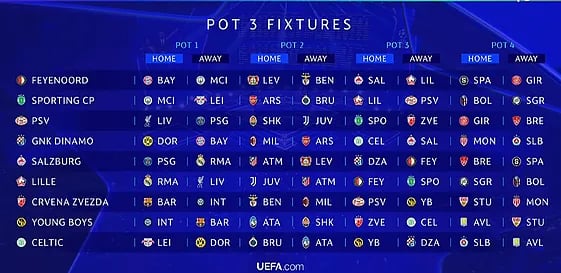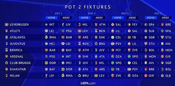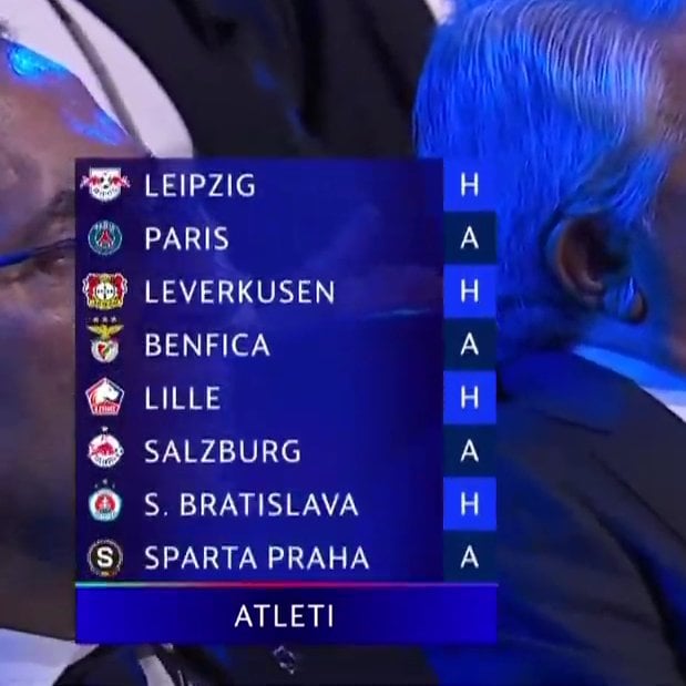 El primer equipo del bombo 2 en conocer sus rivales es el Atlético de Madrid, que se medirá al Leipzig, PSG, Leverkusen, Benfica, Lille, Salzburgo, S. Bratislava y Sparta de Praga