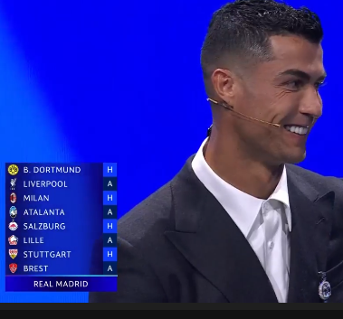 Tras el Barça es el turno del Real Madrid, que se enfrentará al B. Dortmund, Liverpool, Milan, Atalanta, Salzburgo, Lille, Stuttgart y Brest.
