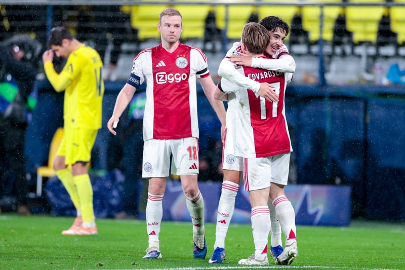 Ficha técnica:1 - Villarreal: Arnau Tenas; Mouriño, Rafa Marín, Renato Veiga, Cardona; Pépé (Mikautadze, min.71), Comesaña, Partey (Parejo, min.74), Moleiro (Buchanan, min.46); Ayoze (Gerard Moreno, min.71) y Oluwaseyi.2 - Ajax: Jaros, Gaaei, Bouwman, Baas, Wijndal (Fitz-Jim, min.82); Klaassen, Regeer (Itakura, min.53), Mokio (Bounida, min.71); Gloukh (Edvardsen, min.82), Dolberg (Steur, min.71) y Godts.Goles: 1-0, min.48: Oluwaseyi. 1-1, min.60: Gloukh. 1-2, min.89: Edvardsen.Árbitro: Nicholas Walsh (Escocia). Mostró tarjeta amarilla a Mouriño, Partey y Rafa Marín por el Villarreal y a Wijndal y Bouwman por el Ajax.Incidencias: Encuentro correspondiente a la séptima jornada de la Liga de Campeones disputado en el estadio de La Cerámica ante 14.023 espectadores. En los prolegómenos el partido se guardó un minuto de silencio por las víctimas del accidente ferroviario en Adamuz (Córdoba). El encuentro estuvo detenido en el inicio de la segunda parte durante cinco minutos para atender de una indisposición a uno de los vigilantes de seguridad del terreno de juego.