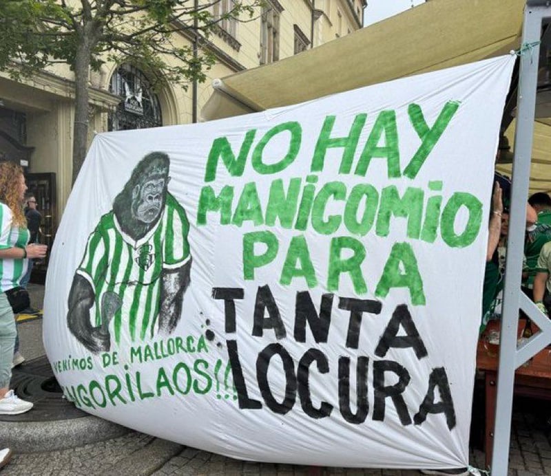 Curiosa imagen la que muestran unos béticos de Mallorca, engorilados a más no poder