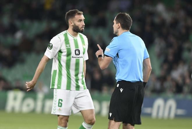 Por agarrar a Hoxha y cortar una contra el Dinamo. Además conlleva suspensión. Se perdería el duelo de ida de octavos de final si el Betis se clasifica hoy