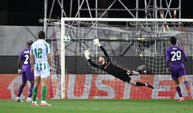 El Betis salió a por todas, con presión alta y acumulando mucho talento arriba. Antony, con recorte y chut lejano, fue el primero en probar a De Gea. La segunda, en el 11', fue de Isco Alarcón, a quien sólo le faltó un número más de bota para empujar un buen centro de Fornals desde la izquierda que fue sacado sobre la línea por el meta español de la 'Fiore'. El castellonense volvía a banda tras mucho tiempo brillando de mediocentro y dejaba la elaboración a Lo Celso, junto a Johnny pero sin renunciar a llegar, como hizo en el 18' estrellando en la espalda de Comozo un rechace a otro intento de Isco. Sólo podían frenarles con faltas.
