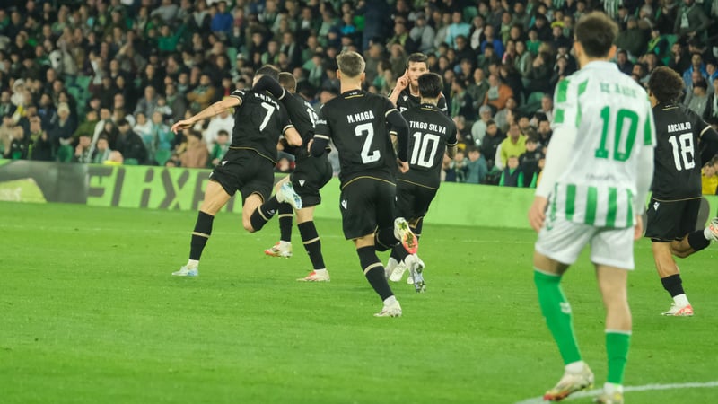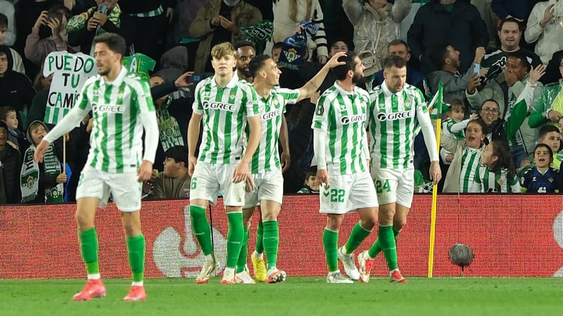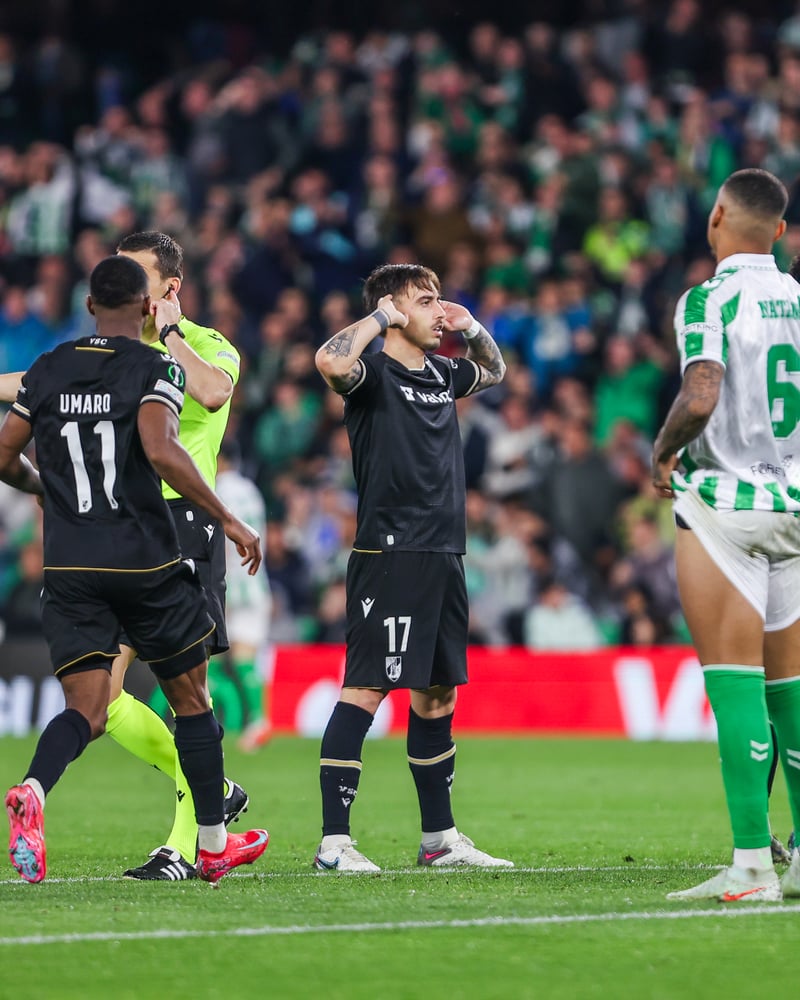 Incidencias: partido correspondiente al duelo de ida de la eliminatoria de octavos de final de la UEFA Conference League disputado en el estadio Benito Villamarín de Sevilla ante un total de 44.366 espectadores, con más de mil portugueses. Tarde lluviosa en la capital andaluza, el césped aguantó bien.