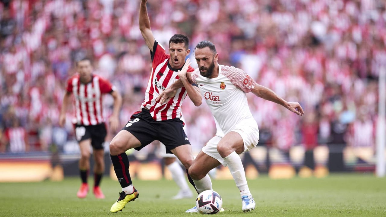Dani Vivian y Muriqi, durante un Athletic-Mallorca disputado en San Mamés.CORDON PRESS
