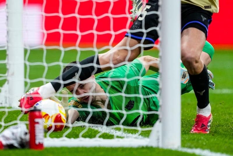 Poco después, el guardameta volvería a ser protagonista por todo lo contrario. Pase suave de seguridad de Eric García y Joan, algo despistado, no acierta en el control. El balón va directo a portería y, aunque el portero consiguió salvar el tanto sobre la línea, Lookman llegaba para anotar a placer. La repetición mostraría como el balón ya había entrado, siendo gol en propia del defensa azulgrana.