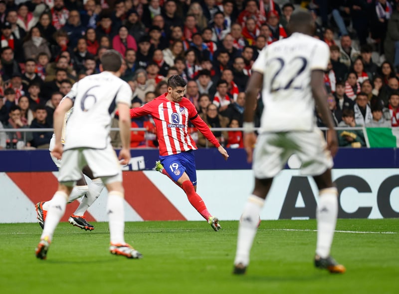 En el minuto 21 llegó la primera clara colchonera, de un testarazo de De Paul que hizo saltar a prácticamente todo el estadio de las butacas. Y tras eso, el fútbol de los colchoneros mejoró, incluso Morata quiso hacerlo bonito intentando una chilena desde dentro del área defendida por Lunin, pero no logró perforar la portería visitante. Despertó a tiempo el Atlético de Madrid y, aunque los de Ancelotti eran más alegres en su ataque, el primero de la noche fue para el conjunto local, merced a un disparo cruzado de Samu Lino desde el área pequeña y después de un centro de De Paul que rechazó Rüdiger. Poco duró la alegría, pues tres minutos más tarde el 1-1 subió al marcador del Metropolitano tras una pésima actuación de Oblak a una falta botada por Modric.