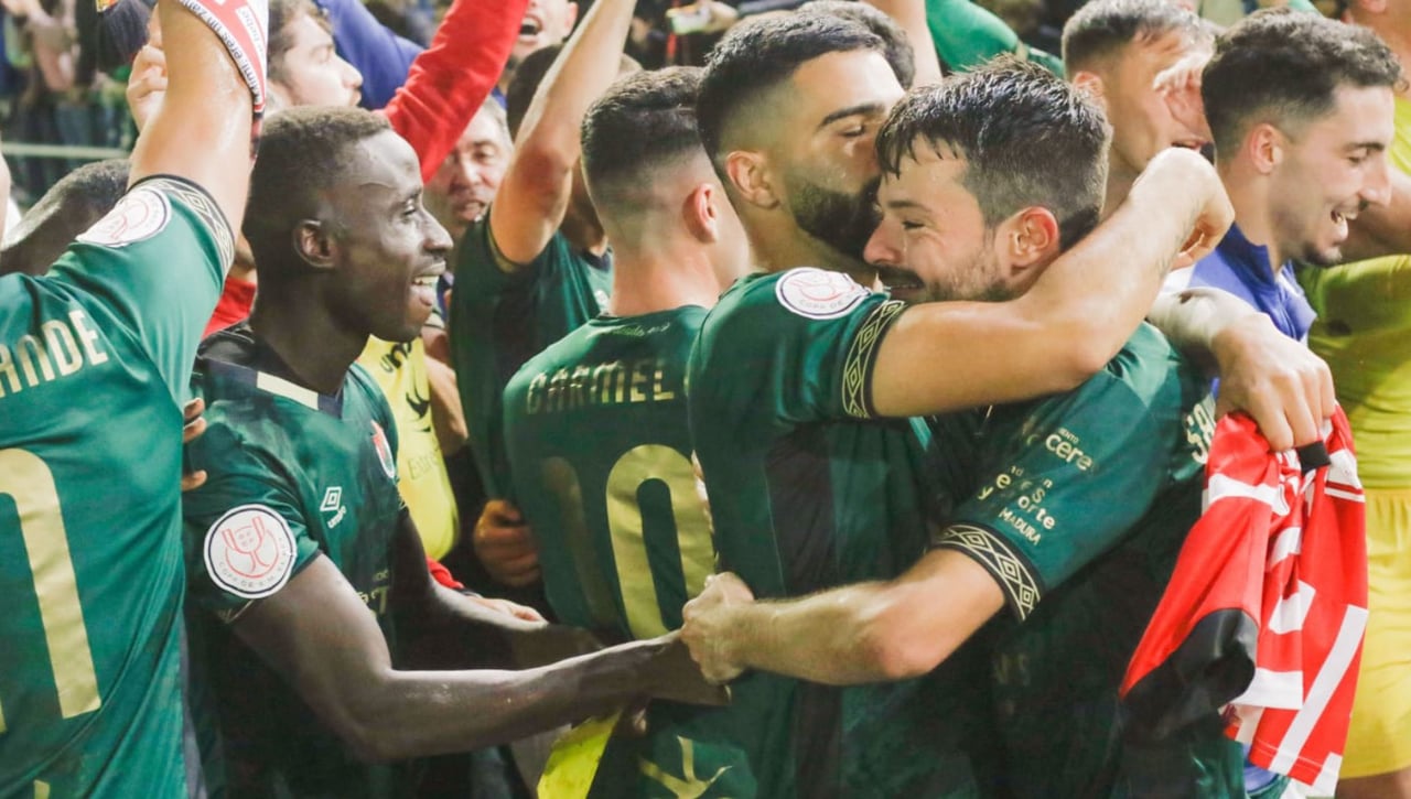 Gran parte de los jugadores del equipo, representantes del cuerpo técnico y muchos aficionados se dieron cita en una cafetería de la ciudad extremeña para seguir sorteo. Abrazos, gestos de satisfacción y rostros de euforia marcaron el momento en el que el sorteo les emparejó con el Real Madrid.