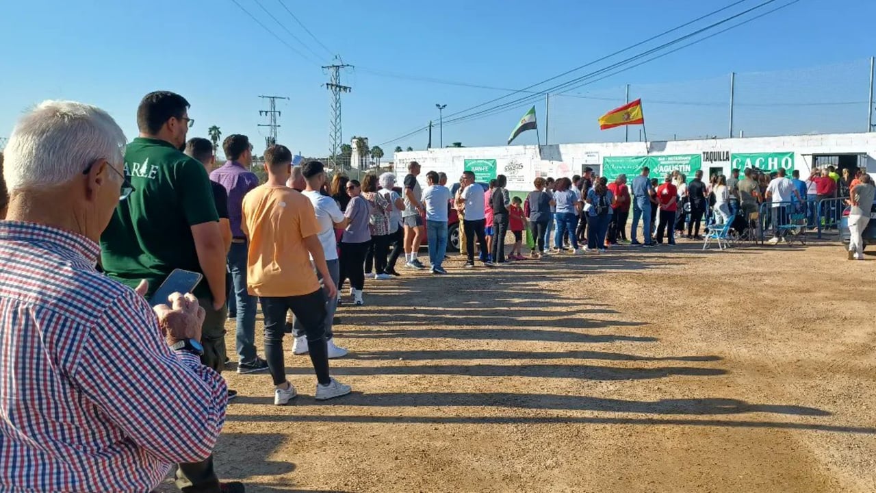 Los primeros aficionados que se agolpaban en el Municipal de la pedanía pacense.CDG