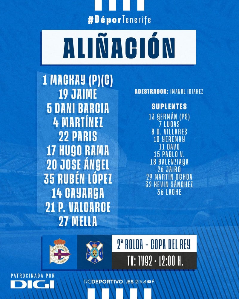 ¡Alineación del Deportivo de La Coruña ante el Tenerife!