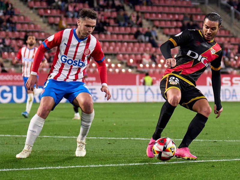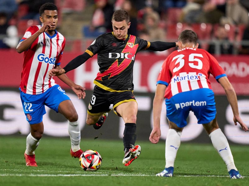 Rayo Vallecano: Daniel Cárdenas; Andrei, Abdul Mumin, Martín, Pep Chavarría; Óscar Valentín (José Pozo, min. 83), Unai López; Isi (Álvaro, min. 66), Nteka, De Frutos (Falcao, min. 76); y RDT (Trejo, min. 66).Goles: 1-0 (15') Stuani; 2-0 (19') Stuani, de penalti; 3-0 (26') Blind; 3-1 (36') Nteka.Árbitro: Figueroa Vázquez (comité andaluz). Amonestó al local Stuani (min. 45+2) y al visitante Nteka (min. 45+2).