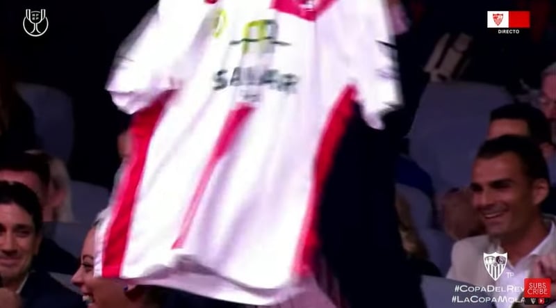 Apenas unos minutos después aparecía la bola del CD Quintanar junto con la del Sevilla Fútbol Club, cuyo presidente saltaba en su asiento del salón de actos Luis Aragonés para celebrar el emparejamiento ondeando una camiseta del equipo manchego.