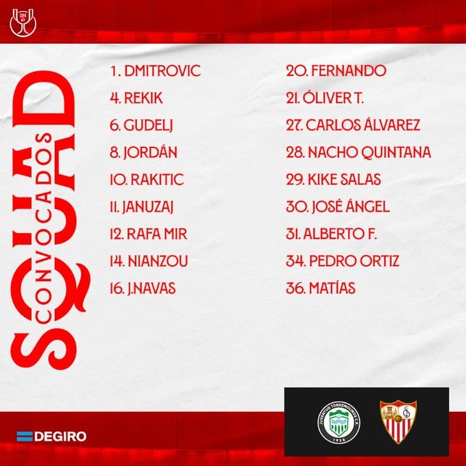 Dmitrovic - Jesús Navas, Nianzou, Gudelj, Rekik - Fernando, Rakitic, Jordán, Oliver Torres, Carlos Álvarez - Rafa Mir#WeareSevilla #NuncaTeRindas pic.twitter.com/SpaQjxq6M7