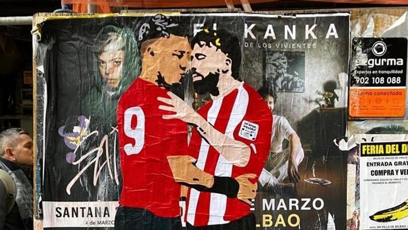 Una de las imágenes de la previa la dejó el artista callejero LKN, que dibujó un mural donde se puede ver al 'Chimy' Ávila e Iker Muniain abrazados cariñosamente.