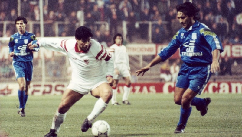 Todo comenzó cuando la competición se denominaba Copa de la Coronación de Alfonso XIII, primera de las nomenclaturas (desde 1902), en concreto en 1927, cuando los blanquirrojos lograron en la liguilla de octavos de final ante el Deportivo Extremeño la segunda mayor goleada de su historia, un 2-11 en Badajoz, que fue ratificado por un 6-0 en la vuelta en la capital andaluza. La siguiente vez, de nuevo ante un oponente pacense, llegó en la campaña 1978/1979, batiendo al ya desaparecido Díter Zafra por 4-1 y 0-1. En la 1985/1986, su víctima fue el también extinto como tal CP Mérida, que sucumbió en la tercera ronda por 0-2 y 4-2. Curiosamente, volvieron a encontrarse en los dieciseisavos de final de la 1992/1993, cuando acariciaron la sorpresa con un 1-1 en el Ramón Sánchez-Pizjuán (tantos de Diego Armando Maradona y Christian Aflenzer), si bien el de Monchu en la vuelta en el Estadio Romano José Fouto metió en octavos a los sevillistas.