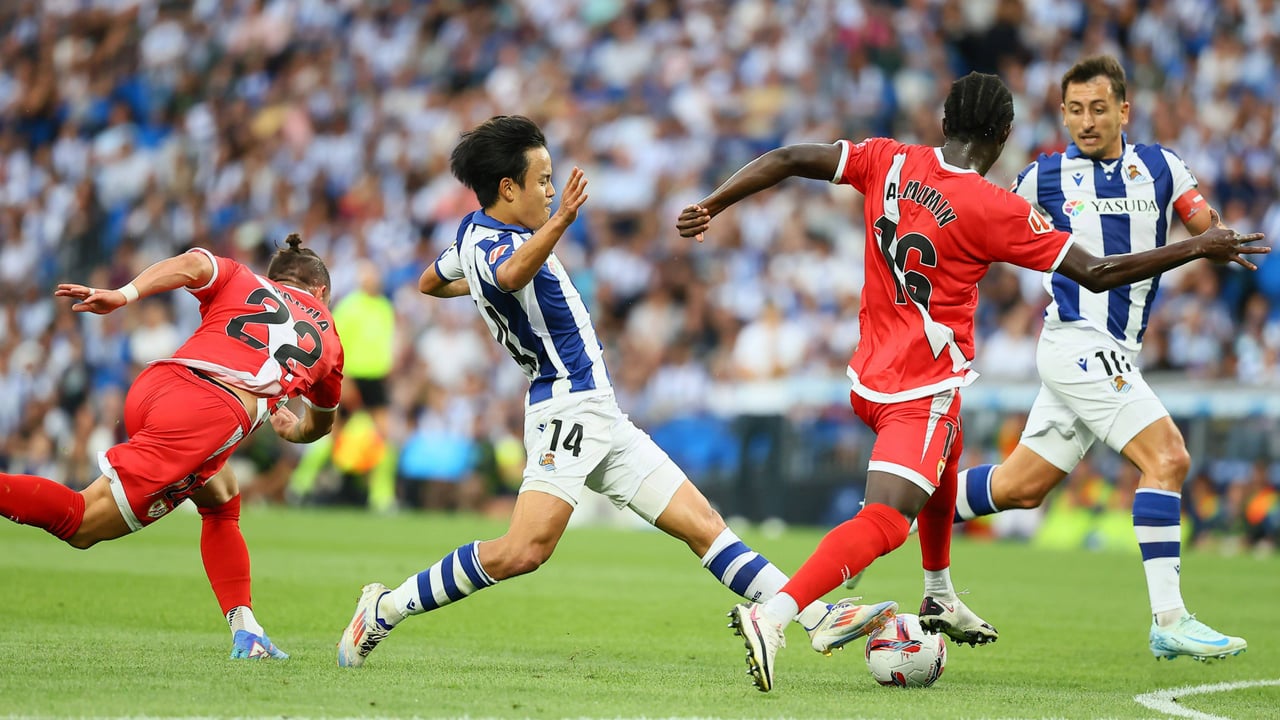 Alineación de la Real Sociedad: Unai Marrero; Aramburu, Zubeldia, Pacheco, Aihen; Zubimendi; Kubo, Brais Méndez, Sucic, Barrenetxea; Mikel Oyarzabal.