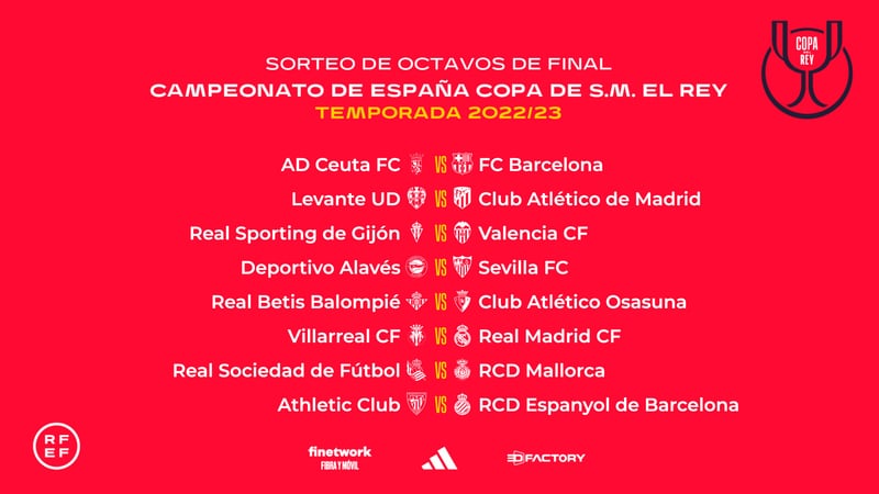 Los ochos emparejamientos de los octavos de final de la Copa del Rey