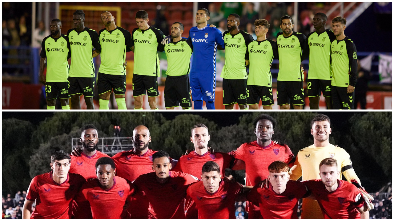 Los onces iniciales de Betis y Sevilla para sus duelos contra Gévora y Las Rozas, respectivamente.RBB / SFC