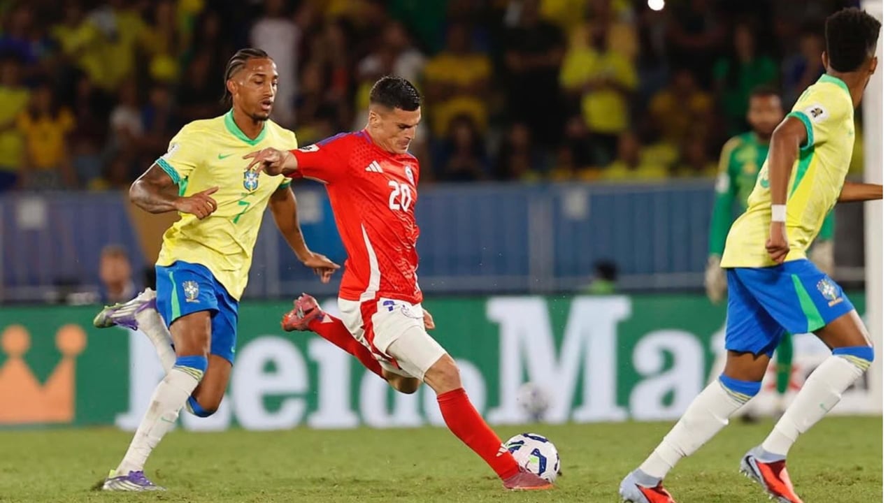 Lucas Cepeda, defendiendo la camiseta de Chile en un partido ante Brasil.Cordon Press