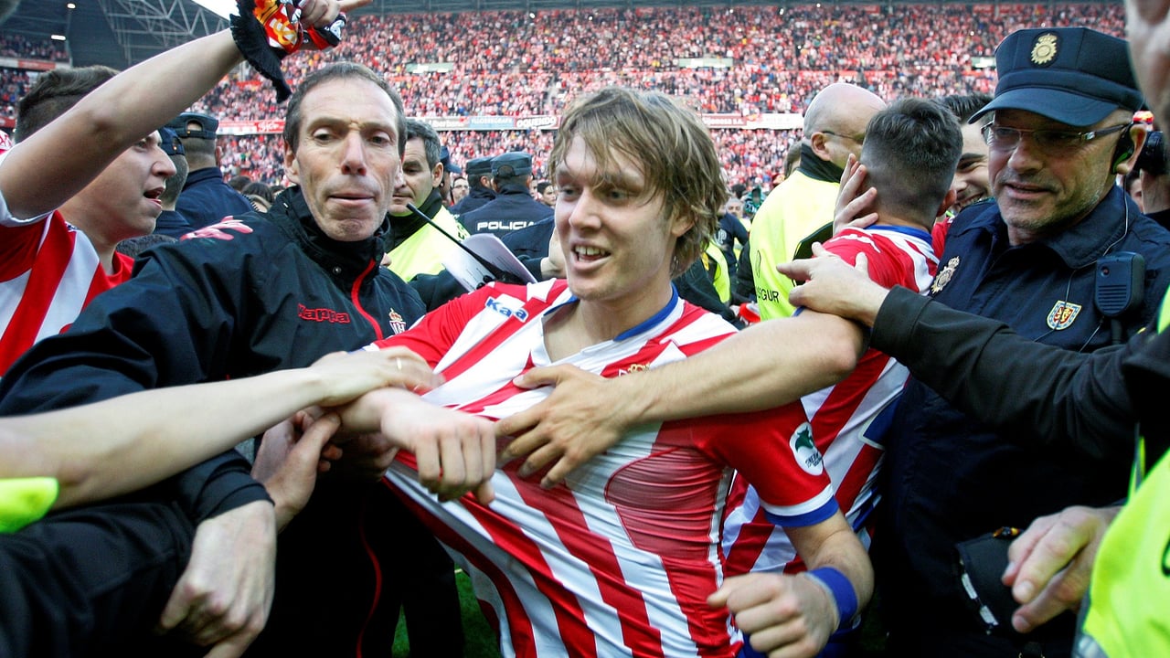 Alen Halilovic está rodeado de aficionados del Sporting de GijónUES