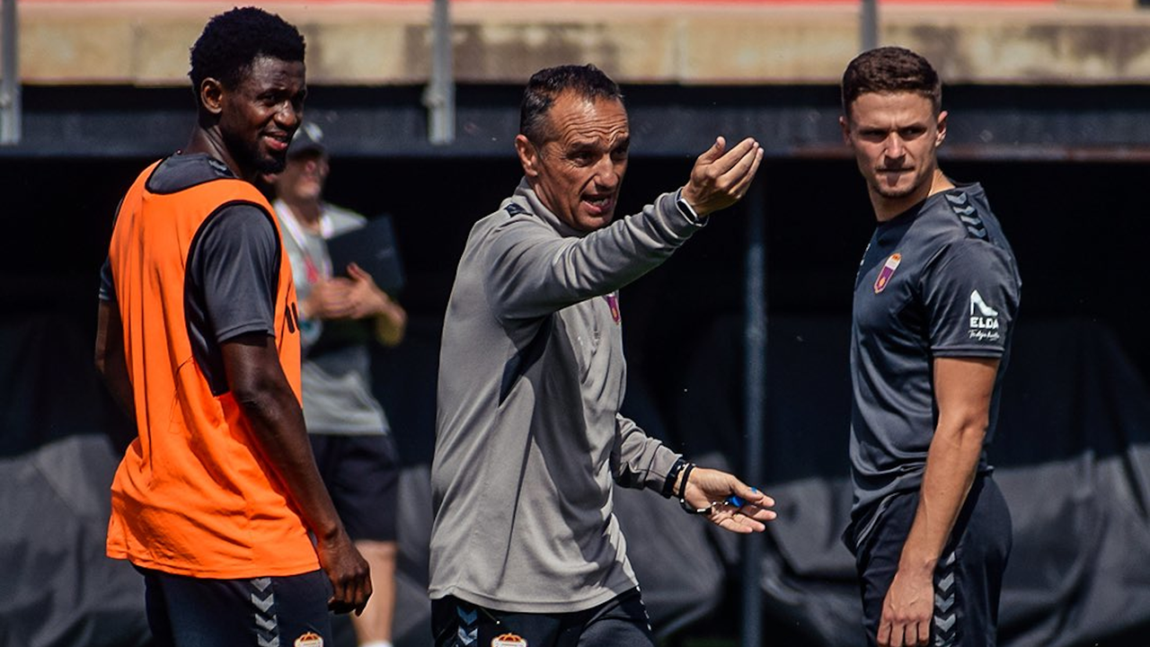 José Luis Oltra en un entrenamiento con el Eldense@CD_Eldense