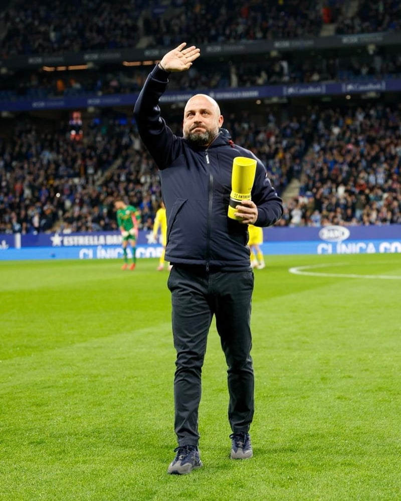 Aunque enero se le está haciendo muy complicado, pues no conoce la victoria todavía en los tres partidos que ha disputado, Manolo González consiguió ser el mejor entrenador del mes de diciembre. Así, al menos, se lo ha reconocido los organizadores de La Liga EA Sports, quienes le han entregado en la previa del derbi catalán frente al Girona el galardón que le acredita como tal. Y el técnico blanquiazul no dudó ni lo más mínimo en compartir dicho momento con todo su cuerpo técnico. Un gesto elegante y merecido para los suyos.