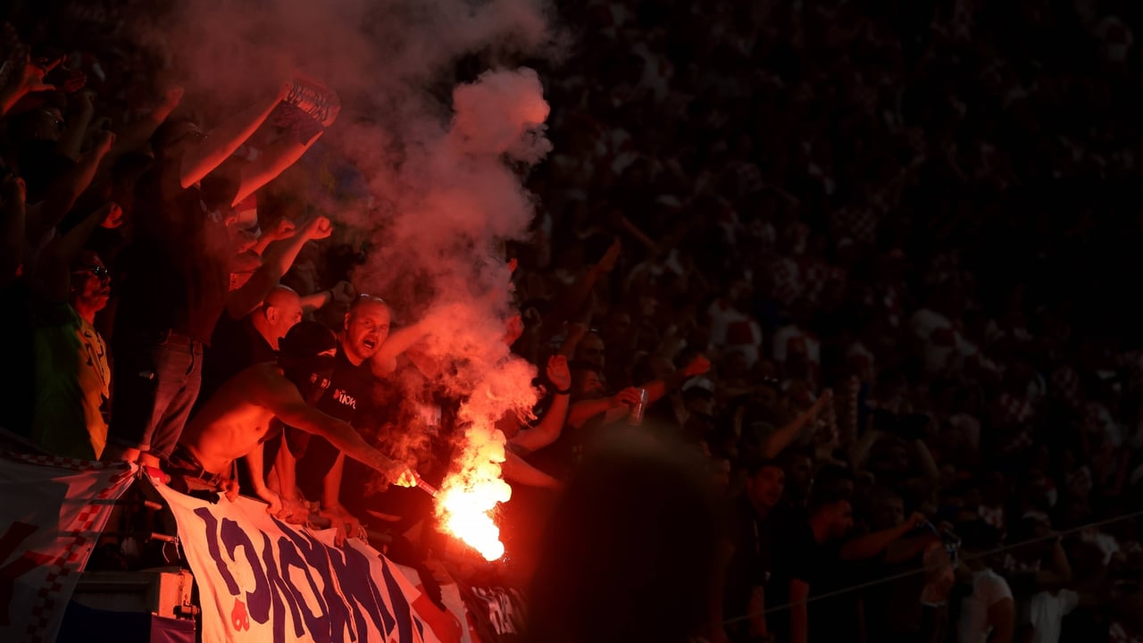 Aficionados croatas encienden una bengala durante el partidoCordon Press