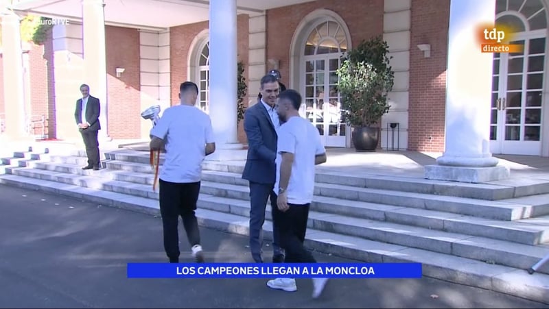 "Gracias por haber dado la mejor versión de España. Por las remontadas, por el espíritu de equipo. Hay veces en las que no gana el mejor, pero esta vez la Selección ha jugado de cine. Imagino que habéis tenido una noche larga, pero permitidme halagaros. Sois la primera Selección con 4 Eurocopas y con pleno de victorias ante las grandes potencias europeas", dijo Pedro Sánchez.