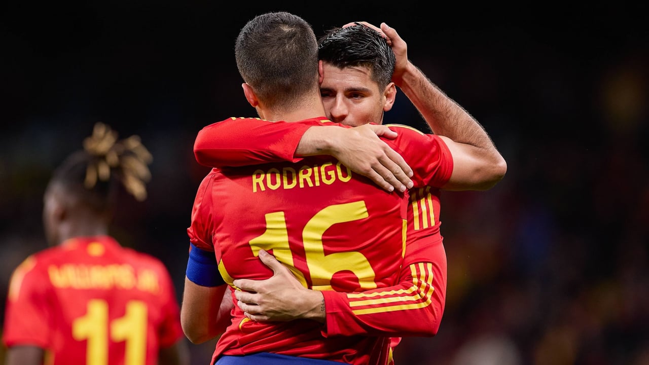Rodri y Morata, abrazados durante un partido de EspañaCORDON PRESS