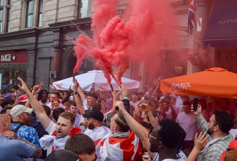 Amplia mayoría de la afición inglesa en las calles de Berlín donde ya están con las celebraciones, cánticos, bengalas y sobre todo, mucha pero que mucha alegría con la esperanza de vencer a los de Luis de la Fuente y romper una sequía de muchísimos años sin conseguir un titulo. ¿Cuántos? En breves os lo comentamos con un sorprendente dato.