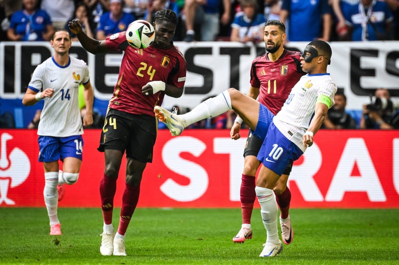 Deschamps volvió a dar la titularidad al 'Principito' Griezmann tras descansar ante Polonia, acompañando a Mbappé en ataque. Salió de inicio con Maignan; Koundé, Upamecano, Saliba, Theo Hernández; Kanté, Tchouaméni, Rabiot; Griezmann, Thuram y Mbappé. Por su parte, Domenico Tedesco incluyó dos variantes. Regresó Carrasco como carrilero por banda izquierda y arriba optó por Openda como compañero de Lukaku y Doku. Se cayeron Tielemans y Trossard del once. Jugó de primeras con Casteels; Castagne, Faes, Vertonghen, Theate; Onana, Openda, Doku; De Bruyne, Carrasco y Lukaku.