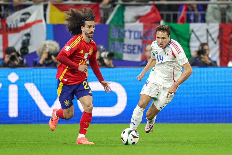 Luis de la Fuente le dio la camiseta de titular a Marc Cucurella en el lateral izquierdo. El jugador del Chelsea, criado en la cantera del Espanyol y que antes de recalar en Londres pasó por Barcelona, Eibar, Getafe y Brighton fue una de las sorpresas de la convocatoria de Luis de la Fuente a pesar de que el seleccionador ya le había llamado para el amistoso ante Irlanda del Norte donde jugó 46 minutos.