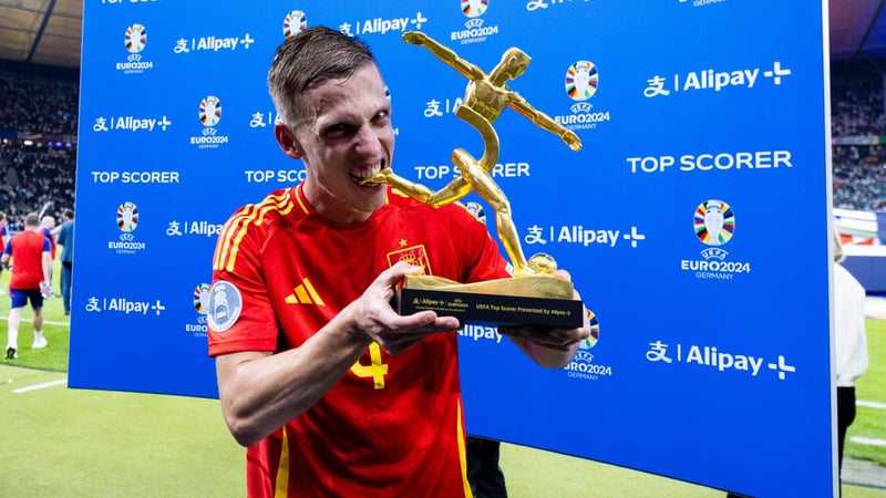 Dani Olmo por su parte marcó tres goles y dio dos asistencias durante todo el torneo, lo que le ha permitido alzarse con el trofeo de máximo goleador por delante de Harry Kane, Musiala, Gakpo, Mikautadze o Schranz. El futbolista del RB Leipzig sucede a todo un Cristiano Ronaldo en este título. Protagonista también en la final, no por sus goles o asistencias, sino por salvar un gol en la línea con la cabeza tras un remate de Guehi en el último minuto de juego.