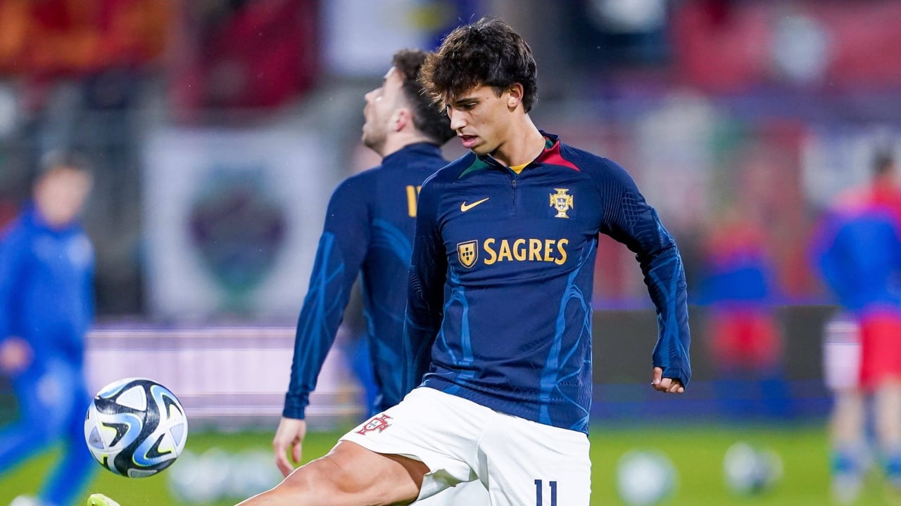João Félix en un calentamiento con PortugalCordon Press