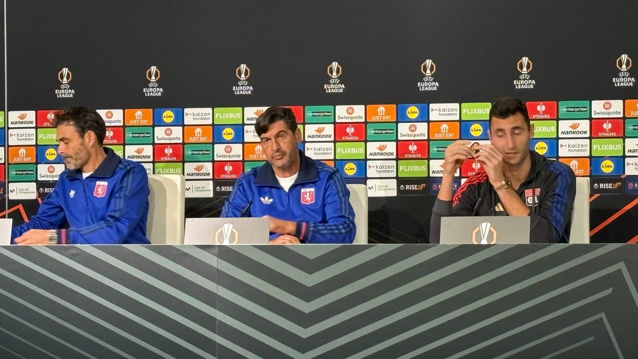 Anuncia grandes rotaciones el preparador portugués, por culpa de las bajas y pensando también en la cita dominical ante el PSG: "Espero un gran ambiente, como siempre aquí. Quiero un equipo que respete nuestro plan de juego y que actúe con valentía y ambición. Espero un equipo lleno de coraje. Voy a hacer cambios y daré minutos a algunos jugadores, quizá por primera vez, pero confío en ellos. Estamos aquí para ganar. La proporción (de variaciones) será significativa, pues ya saben que nuestra plantilla es bastante corta. Pero espero un equipo joven que ya demostró su nivel en la UEL. Tenemos problemas, como la ausencia de Malick Fofana, Ernest Nuamah y Orel Mangala. Tampoco estarán Rachid Ghezzal y Hans Hateboer. ¿Corentin Tolisso? Jugó mucho y sufrió una pequeña molestia antes del último partido (en Brest), aunque aguantó en el campo. Ahora mismo, lo mejor es que descanse y que nosotros no corramos riesgos. Más adelante veremos si está en condiciones de enfrentarse al PSG".