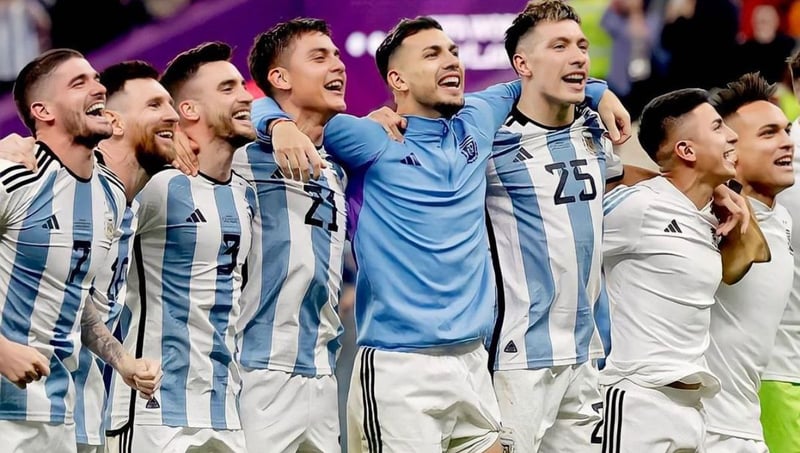 Lisandro Martínez, ayudado por Montiel y Acuña.UEFA