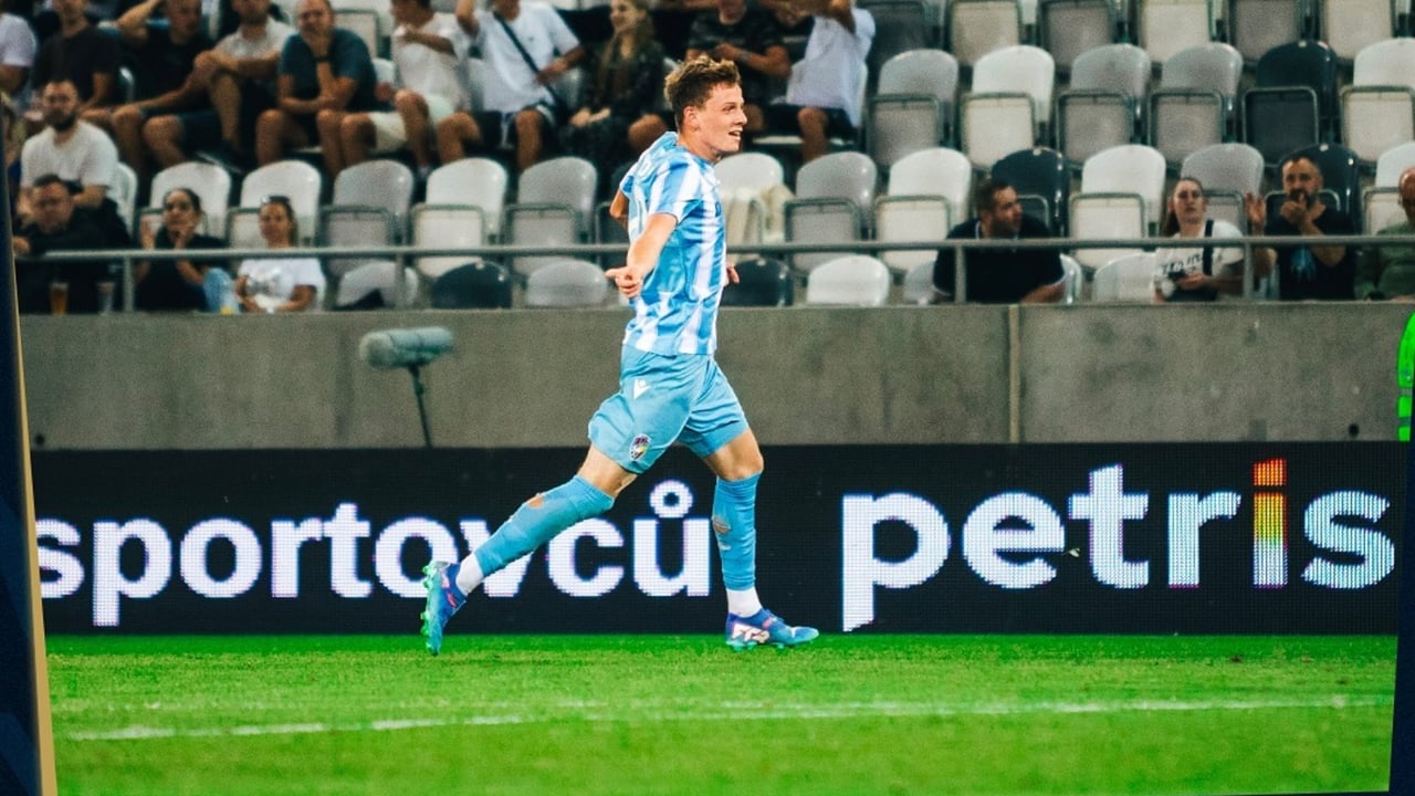 El joven Jiri Panos tras marcar frente al Kryvbas Kryvyi Rih en la tercera ronda previa de la Europa LeagueX / @fcviktorkaplzen