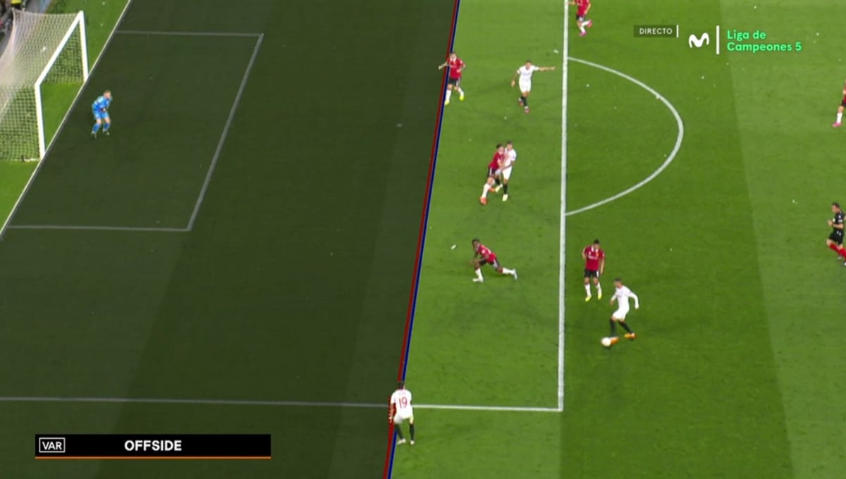 Sin embargo, la confianza se había instalado en las huestes de Mendilibar, como se demostró en el 26, con un centro de rabona de Gudelj y una dejada de En-Nesyri para que De Gea se adelante por poco a Ocampos, última acción reseñable antes de la recaída de Marcao, suplido por Suso para que 'Nema' regresase a su hábitat natural el último año y medio. El compromiso era otro de los baluartes nervionenses, pues, sin renunciar nunca al ataque, sobresalía la solidaridad hasta de los delanteros para replegar y hacer coberturas. El United sólo aparecía a cuentagotas y con escaso peligro, como demostró a diez del intermedio el cabezazo alto de Casemiro a pase de Antony. Mucha más sensación de peligro llevaba el caracoleo del 'Coco' en el semicírculo, con lanzamiento ajustado abajo. Si no había errores, parecía imposible que los 'red devils' se metiesen en el partido, por lo que fue muy aplaudida la intervención de Fernando tras un regalo de Badé, si bien eran los locales los que apretaban en pos del segundo. Lo adivinó Suso, que estrelló su disparo desde cerca en Lindelof, y lo consiguió Ocampos, que la puso en la escuadra a los cuarenta minutos a pase de un Acuña en posición ilegal cuando recibió, como confirmaría luego el VAR.